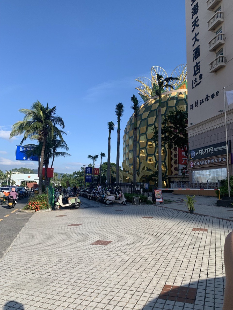 Итак, начнем с района Дадунхай, где мы и остановились. Найти это выдающееся здание легко по форме. На втором этаже большой магазин, где можно купить все: от продуктов и техники до канцелярии и посуды. Также есть магазин с купальными принадлежностями. В некоторых магазинах одежды есть постоянная реклама на русском, типа "не проходите мимо, заходите к нам". Как-то мы пришли в магазин и внезапно выключили свет во всем здании. Естественно , весь ананас «парализовало», так как ничего по кассе не провести. Основа комплекса это оздоровительные заведения, НО там же можно купить дешевые сувениры. Например, там можно купить маски по 1 юаню. Я теперь в Питере маски не могу за 100 рублей покупать😔 Также можно закупиться чемоданами, электроникой и чаем Это брендовый магазин китайской одежды. Дорого, богато. Здесь же можно купить Apple и Me Находится прямо по дороге на пляж в бухту Дадунхай, отметила кружочком на карте. Почему-то не сфоткала. Мне цена показалась обычной, но пара из Минска «писала