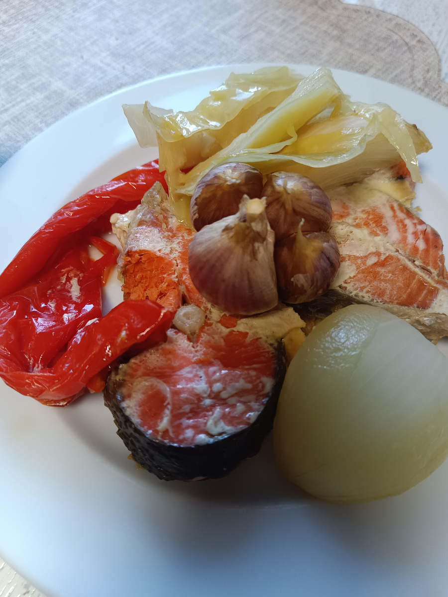 Добрый день дорогие мои друзья .С вами Людмила .Как смотрите на то,приготовление обеда рыбки ,с овощами в духовке ?Думаю все это любят.Да и полезно то как.Можно взять рыбу любую.Я купила лососевые готовые дольки. Овощи. Как без капусты .,Как без перца.,лука,чеснока.По солить.Взбрызнуть маслицем.Для аромата чеснок,цельный.Лук,лук это брат чеснока . Запекать. Накрыть фольгой.Хорошо закрыть,так чтобы весь аромат не убежал ,не испарился .Поставить в разогретую духовку . Полезно ,вкусно,красиво.И что не мало важно это быстро. Каша. Надо приготовить кашу.Долгл думала,и остановилась на шпонке .А что очень даже ничего . Подойдёт .Дело сделано.Залила один стакан шпонки кипятком.Промыла.Говорят пшено надо заливать кипятком ,чтобы ушла горечь.Так и сделала.Высырала в мультиварку Налила воды ,по солила.И включила на тридцать минут .Готовься горшочек, готовься . Вот и в