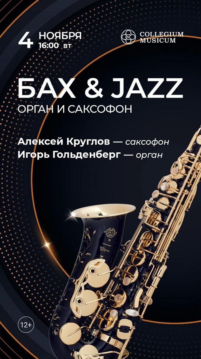 📍 Афиша концертов Collegium Musicum на ближайшую неделю! 4 ноября / вторник, 16:00 Бах & Jazz: орган и саксофон 6 ноября / четверг, 20:00 Вокруг света: орган, волынка, саксофон 8 ноября / суббота, 18:00 Музыка Вселенной: Иоганн Себастьян Бах и Арво Пярт 9 ноября / воскресенье, 16:00 IN NOMINE BACH: посвящение великому мастеру 9 ноября / воскресенье, 19:00 Музыка из воздуха: орган и терменвокс 🔥Скидка 20% по промокоду ВСЕЛЕННАЯ