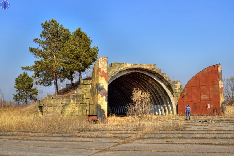 Позади здания штаба располагался ангар технической эксплуатационной части, в котором обслуживали самолёты, но ещё долгое время его использовали военные при репетициях парадов, поэтому мы его отснять не успели, а после их окончательного ухода там стало совсем не на что смотреть.