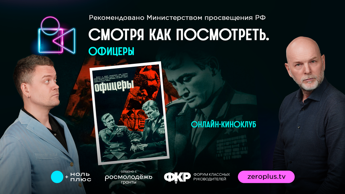 Говорим «Офицеры», подразумеваем — патриотизм, говорим патриотизм, подразумеваем — «Офицеры». Пожалуй, этот фильм идеален для разговора о любви к Отчизне. Но вот что удивительно: на протяжении всего выпуска онлайн-киноклуба «Смотря как посмотреть», посвященного легендарной ленте, его ведущие Николай Данн и Пётр Агеев не произнесли слово «патриотизм» ни разу. Почему? Да потому, что кинопедагогический подход всегда вне шаблонов и всегда больше привычных стандартов.