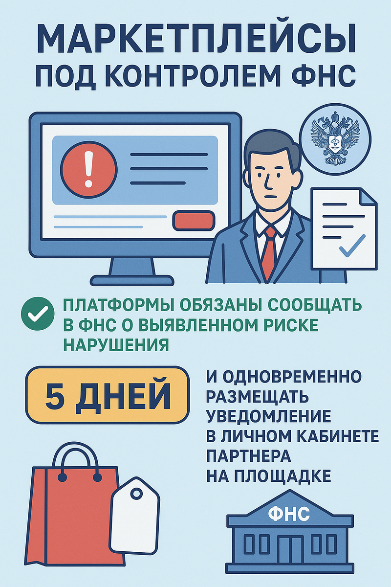 - В течение 5 дней площадка уведомляет ФНС и самого продавца.