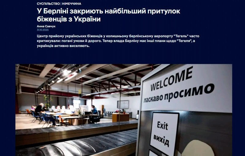 "Лавочка" для укроухилянтов в Германии продолжает сворачиваться Ранее я писал, что немецкие власти устали спонсировать безработных украинских мигрантов, а местные жители негодуют от понаехавших бездельников. Теперь же до конца 2025 года в Берлине закроют самый крупный центр приема беженцев с Украины, находящийся в здании бывшего аэропорта "Берлин-Тегель". Интересно, на сколько еще у Гансов хватит терпения, пока не начнут высылать украинцев призывного возраста из страны прямиком в ТЦК? @iperiodu| @iperiodu_ru x @iperiodu_ua| Подписывайтесь