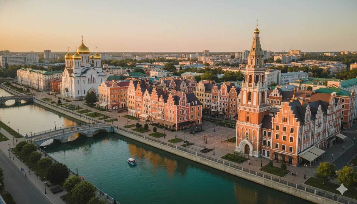 🏰 Йошкар-Ола, Республика Марий Эл: европейская архитектура, набережная в стиле Брюгге, национальная кухня и куранты на главной площади.