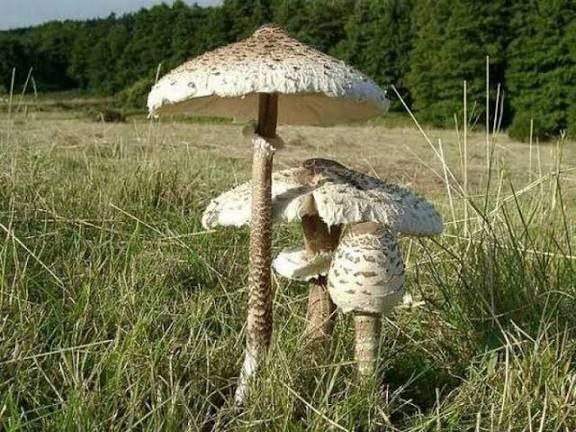 Самый удобный гриб: вкусный, легкий, крупный. Зонтик пестрый Зонтик, при всех его достоинствах - не самый популярный гриб. Понятно, почему: мешает его мухомороподобная внешность, трудно пересилить себя и решиться взять, а потом приготовить и съесть этот странный большой гриб. Знаете, как обычно развиваются события? Многие люди знают, что зонтик съедобен, однажды они его срывают и приносят домой, чтобы попробовать. Но, пока обработаны все грибы, принесенные из леса - уже не до зонтика. Назавтра - тоже, затем грибы благополучно выбрасываются. Такая история может повторяться много - много раз, пока наконец зонт приготовляется первым, до переборки основной массы грибов. Самый простой и популярный способ готовки - пожарить в кляре. Или просто пожарить, как блин. Думать о времени обработки не стоит, зажарилось - можно есть, то есть 2-3 минуты вполне достаточно. Зонтик - это абсолютно съедобный гриб, его можно есть даже сырым, как шампиньон или белый гриб. Впервые "откушав" пышных отб