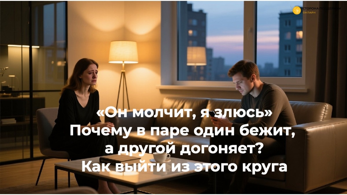 Вы снова спорите. Не о деньгах, не о быте, а о том, что он опять замолчал. Вы говорите, просите, требуете, а он отводит взгляд, уходит на кухню или в телефон. И внутри вас нарастает не просто обида, а ярость: «Почему он не слышит? Почему не хочет разговаривать?» А потом — чувство вины. "Может, я слишком давлю? Может, я сама виновата?" И вы замолкаете на время, пока не повторится всё снова. Это один из самых частых сценариев, с которым приходят ко мне женщины и мужчины. Особенно — из крупных городов, где ритм жизни ускорен, а эмоциональные ресурсы истощены. Но дело не в «плохом характере» партнёра и не в вашей «навязчивости». Это естественный, почти инстинктивный танец, который возникает в паре под давлением стресса, страха и непонимания. Когда вы чувствуете эмоциональную дистанцию, ваш мозг воспринимает это как угрозу выживанию. Да, именно так. Нейробиология показывает, что для древней лимбической системы одиночество в паре — почти то же самое, что физическая опасность. Вы начинаете «т