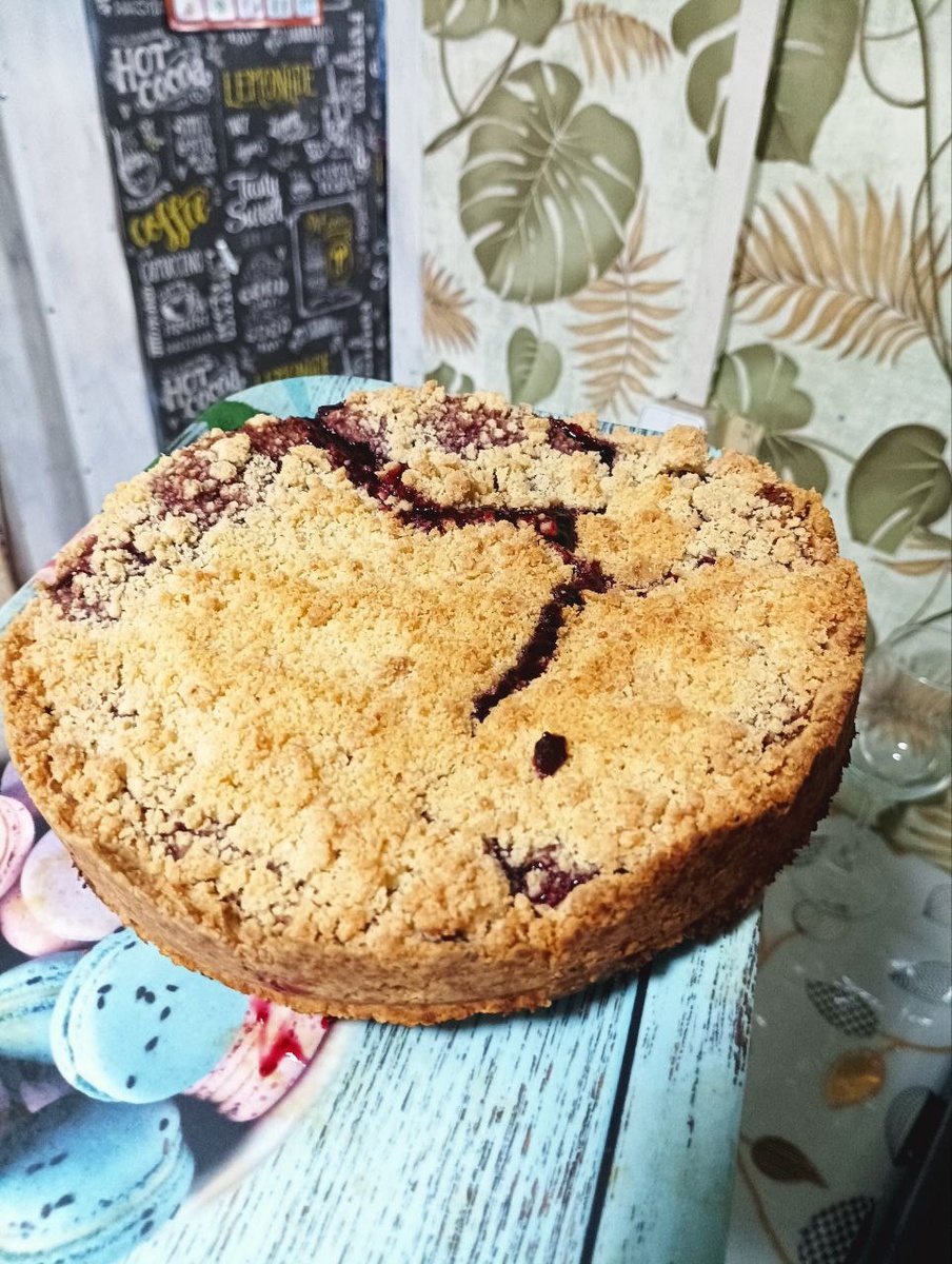 Готовили сегодня тертый пирог к чаю, но я переборщила с вареньем 😁