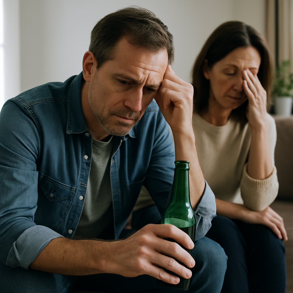 Контроль ослабевает: человек обещает себе «только бокал», но не может остановиться. Алкоголь начинает занимать всё больше места — в мыслях, разговорах, планах. В трезвом состоянии — раздражительность, тревога, пустота. После алкоголя — краткое облегчение, за которым приходит вина и апатия.
