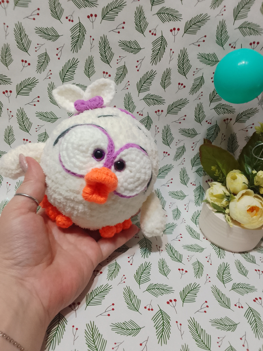 Здравствуйте . Предлагаю вашему вниманию МК очаровательной птички . Благодаря пряже Alize Softy игрушка получается очень мягкой и пушистой. Сложность заключается в том что при вязании этой пряжей , необходимо постоянно следить за количеством столбиков и петель в каждом ряду . Советую обязательно использовать при вязании маркер яркого цвета . Пряжа Alize Softy молочный цвет Пряжа детская Новинки белый , сиреневый , оранжевый и персиковый цвет . Безопасные глазки Нить мулине серый цвет Наполнитель Игла для сшивания Ножницы Маркер Крючок ✓2,5 КА- кольцо амигуруми сбн - столбик без накида ВП- воздушная петля приб - прибавка уб- убавление Давайте приступим . Молочный цвет. Нить в два сложения . 1. 6 ВП в КА 2. 6 приб= 12 сбн 3. (1 сбн , 1 приб )*6=18 сбн 4. (2 сбн , 1 приб )*6=24 сбн 5. (3 сбн , 1 приб )*6=30 сбн 6. (4 сбн , 1 приб )*6=36 сбн 7. (5 сбн , 1 приб )*6=42 сбн 8. (6 сбн , 1 приб )*6=48 сбн 9.-16. 48 сбн 17. (6 сбн , 1 уб)*6=42 сбн 18. (5 сбн , 1 уб)*6=36 сбн 19. ( 4