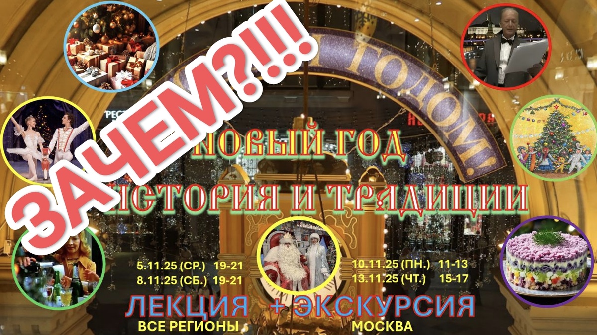 Зачем мне лекция на тему Нового года, если мне нужна только новогодняя экскурсия? Логичный вопрос, на который нужно дать ответ. 1. Материал лекции охватывает гораздо больше аспектов и деталей новогодних традиций, нежели можно впихнуть в экскурсию. 2. Лекция призвана сформировать всестороннее знание и понимание как самого праздника, так и его истоков. 3. Лекция способствует формированию более широкого круга базовых знаний на заданную тему. 4. Лекция позволяет привязать полученные знания и информацию фактически к любому объекту показа в новогодний сезон. Ссылка на форму для регистрации на МК "Новый год. История и традиции»: https://forms.yandex.ru/u/69026e131f1eb568ac23339e В рамках экскурсии используется далеко не весь материал и информация о НГ. Мало того, экскурсионный маршрут подразумевает вариативность, и владение более глубокими познаниями в вопросе новогодних традиций позволяет экскурсоводу выстроить свой оригинальный маршрут. Вы, конечно, можете записать всю экскур