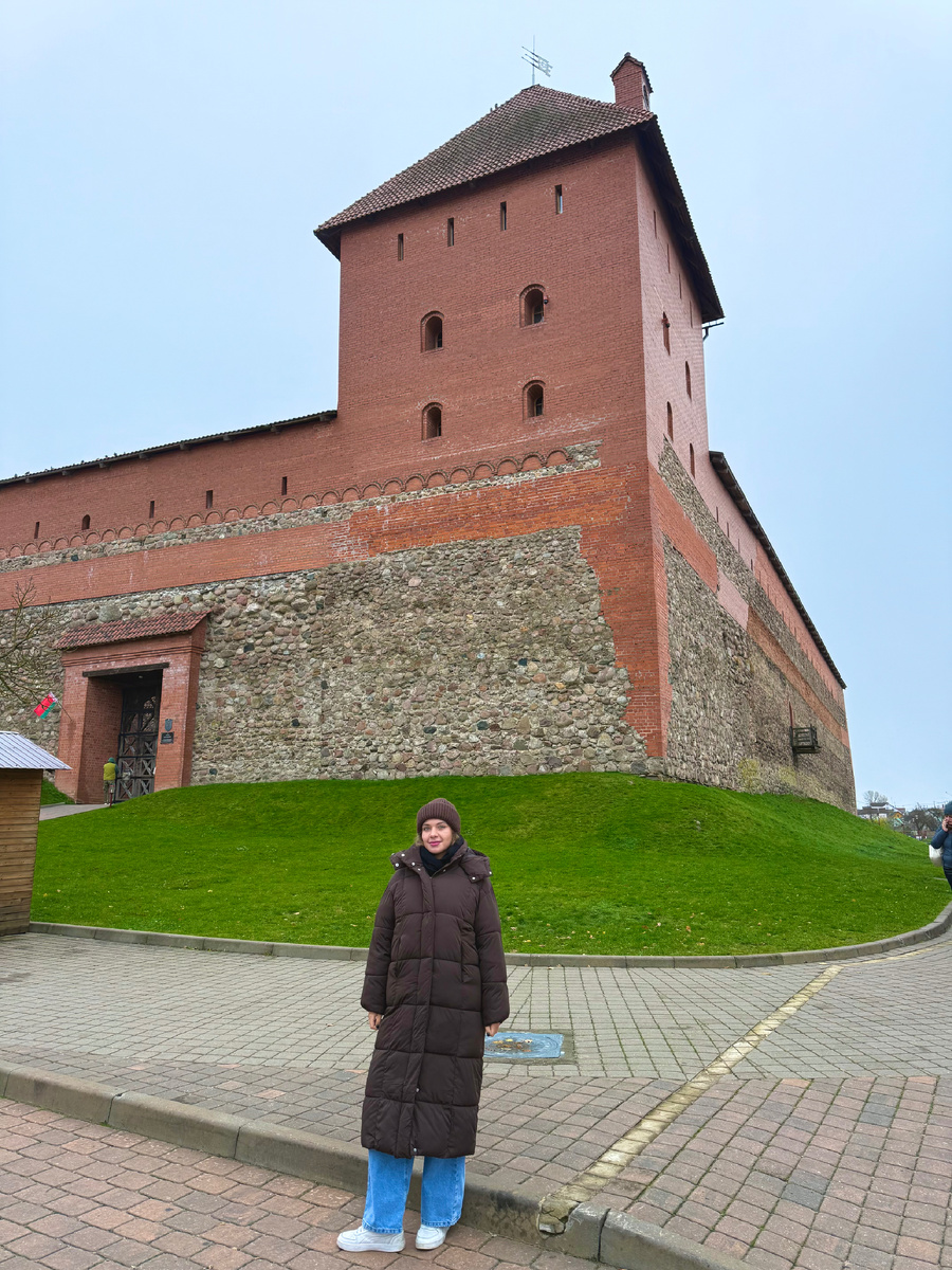 Я давно хотела посетить город Лиду, ведь там живёт сестра моего мужа. Добраться до Лиды можно разными способами: на поезде, на автобусе или, как сделали мы, — на машине. Здесь опишу весь наш маршрут с описанием, ссылками и ценами. Цены пишу сразу в переводе на русские рубли на конец 2025 года. Добравшись до этого прекрасного города, мы первым делом отправились в самое знаменитое место — Лидский замок. Купив билеты, мы зашли внутрь. Сам замок смотрится очень внушительно и монументально, особенно учитывая, что он был недавно отреставрирован. Однако нам с мужем показалось, что работа вышла слишком уж новой и яркой. Создалось ощущение, что дух старины был напрочь уничтожен: яркий кирпич сильно контрастирует со старыми, более тёмными фрагментами, оставшимися по соседству. На верхнем этаже замка находится смотровая площадка, откуда открывается вид на город. Мы прогулялись по музею внутри замка и по его территории, сделав по пути множество памятных фотографий. После осмотра замка мы планирова