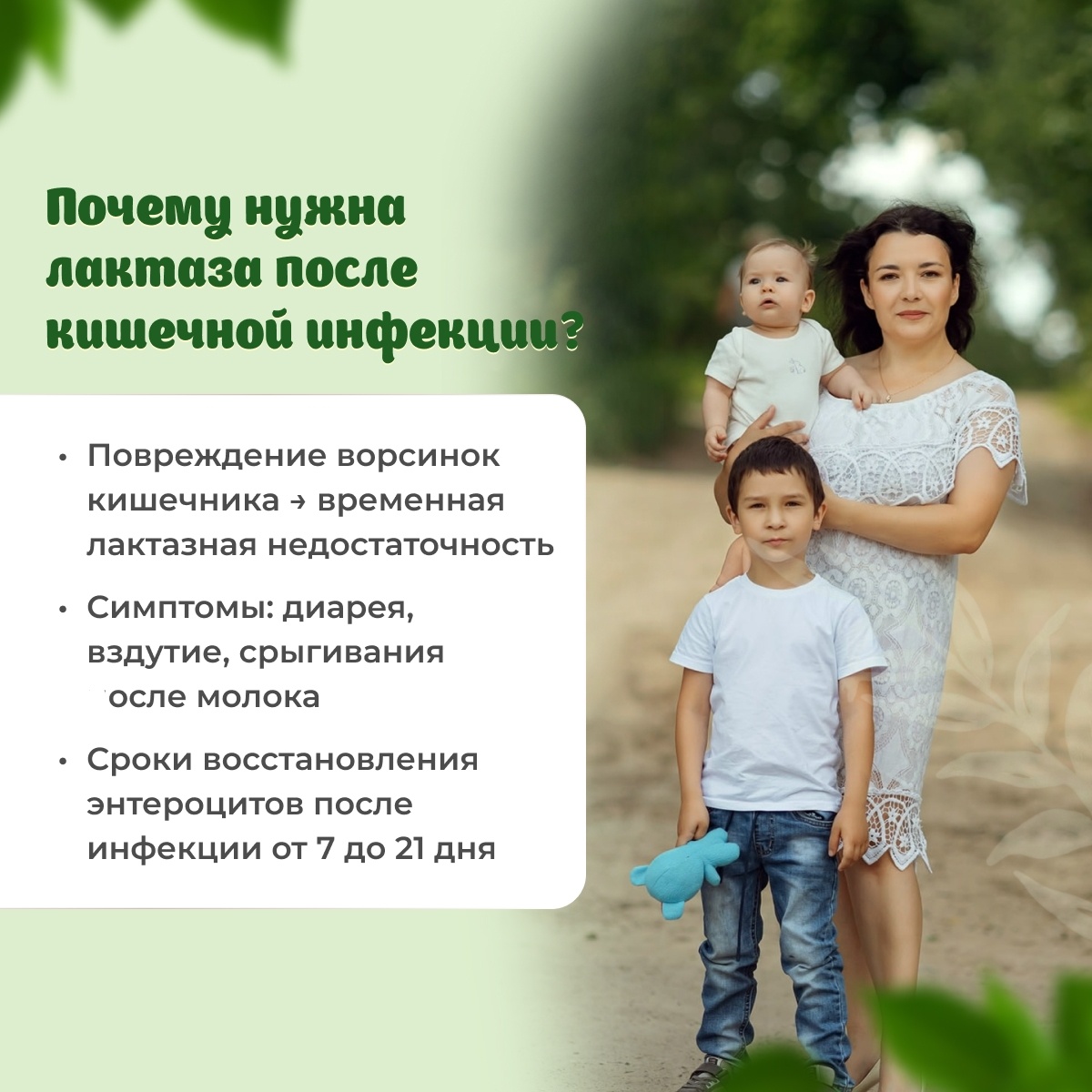 Кишечная инфекция — серьёзное испытание для организма ребёнка. Одним из последствий такого заболевания может стать непереносимость молока. В этой статье мы разберёмся, почему так происходит, как распознать проблему и как с ней справиться. Что такое непереносимость молока? Непереносимость молока — состояние, при котором организм не может полноценно переработать лактозу (молочный сахар) из‑за дефицита фермента лактазы. Это может проявляться различными неприятными симптомами, особенно после употребления молочных продуктов. Почему после кишечной инфекции может развиться непереносимость молока? Кишечная инфекция нередко приводит к повреждению слизистой оболочки кишечника, что может снизить выработку лактазы — фермента, необходимого для переваривания лактозы. В результате у ребёнка может развиться временная или даже длительная непереносимость молока и других молочных продуктов Основные причины непереносимости молока после кишечной инфекции: 1. повреждение энтероцитов (клеток кишечника), выра