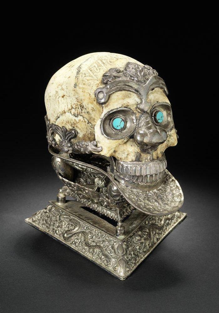 Церемониальная чаша-череп в серебряной оправе, называемая капала, из Тибета или Непала. Серебряные глаза украшены бирюзой. XIX век н. э. Коллекция Жака Дезенфана. Скульптура ракшаса (демона). Ява, Индонезия, XIII век. Фотография сделана в 1857 году. Золотое кольцо, найденное на археологическом участке Сарук аль-Хадид в эмирате Дубай, ОАЭ. Период железного века II 1100–600 гг. до н. э. Ныне хранится в Археологическом музее Сарук аль-Хадид. Маска мумии из стеклянных бусин. Египет, VII–IV вв. до н.э. Монреальский музей изящных искусств. Керамическая фигурка мучителя ада, высотой 80 см. Китай, династия Мин, XVI век. Коллекция Джорджа Крофтса. Французский закрытый шлем из стали, золота, кованого железа и латуни. Около 1630 г. н. э. Ныне хранится в Метрополитен-музее. Золотое минойское кольцо со спиральной линейной надписью А, Кносс, около 1700–1600 гг. до н. э. Линейное письмо А до сих пор не расшифровано. Кукла женщины. Культура Чанкай, центральное побережье, Перу, ок. 1100–1470 гг. Хлопо