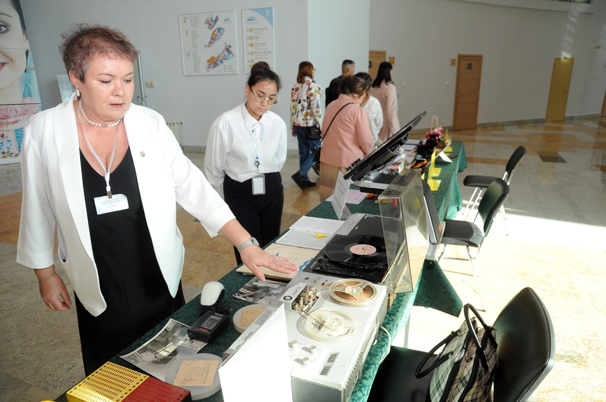 Маленькие тряпочные куколки и ангелочки, всевозможные украшения и даже растения из бисера — можно было подумать, что это выставка работ клуба рукодельниц, если бы не расположившаяся тут же экспозиция всевозможных звукопроизводящих устройств — от проигрывателя с пластинкой и катушечного магнитофона до плееров с яркими крупными кнопками, как будто детских. Но они не детские: с помощью этих устройств прослушивают книги слепые и слабовидящие посетители Башкирской республиканской библиотеки для слепых имени Макарима Тухватшина.