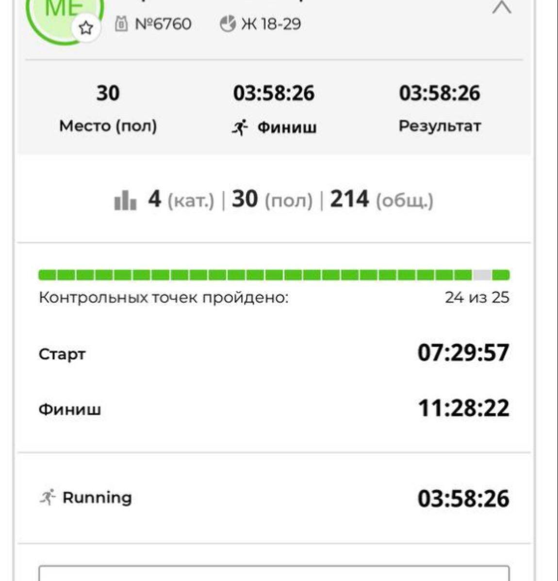 Есть финиш и первый личник на марафоне!!! Из 4 х часов - 3:58:26