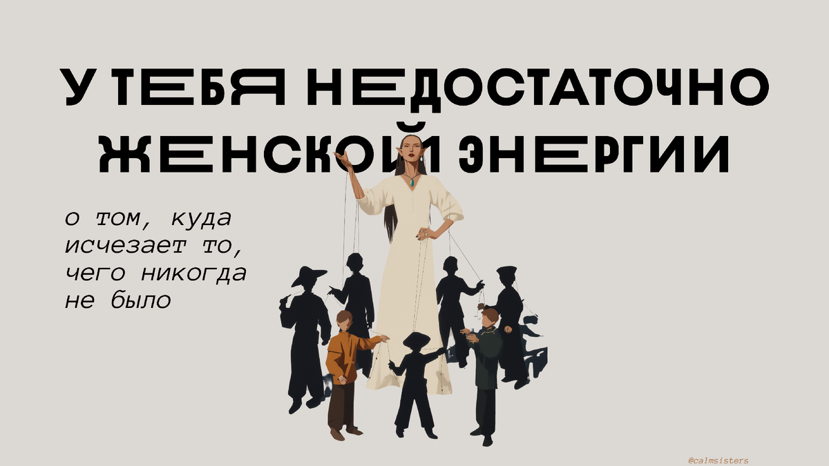 Не существует понятийного аппарата за термином «энергия женственности». Есть вытесненные роли, неудовлетворённые потребности и привычные способы быть нужной.
