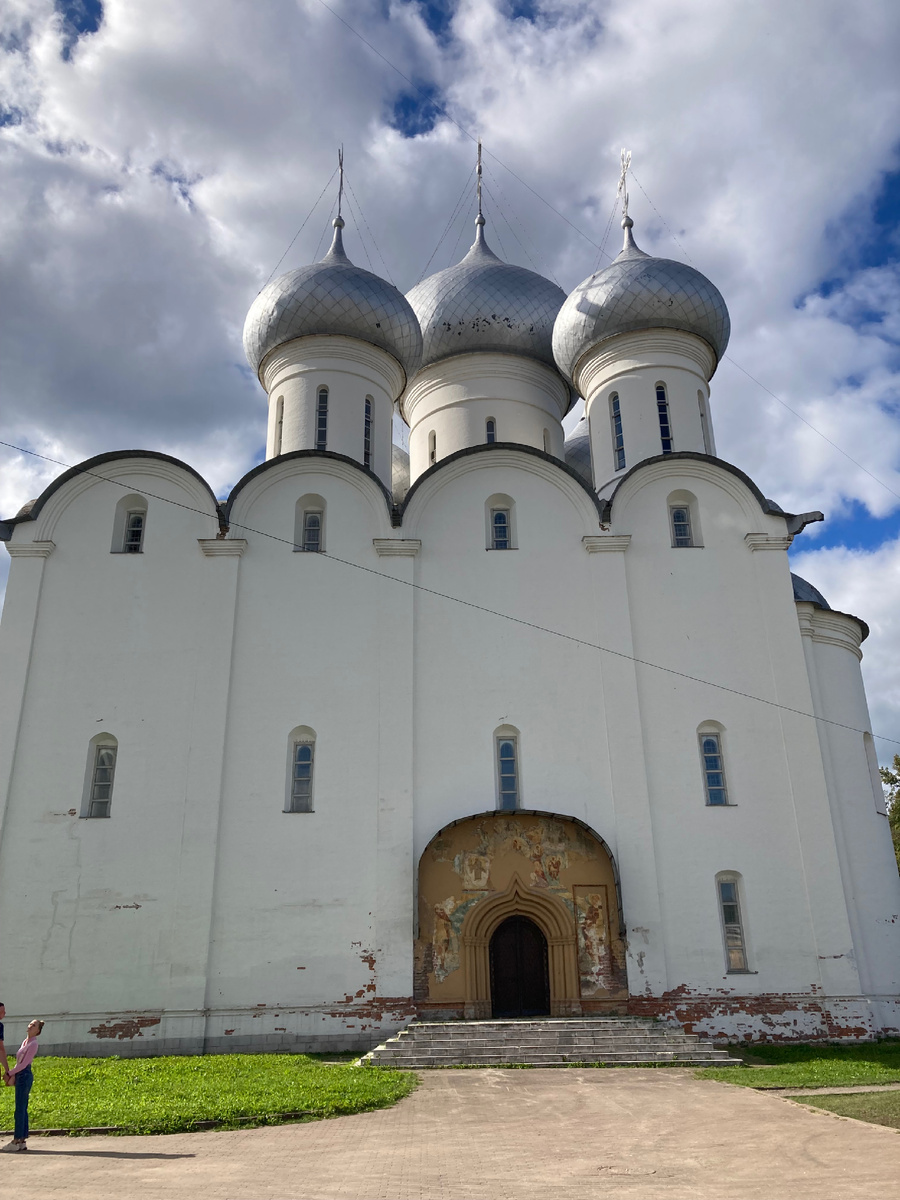 Прочла новость сегодня, что установили памятник Ивану Грозному в Вологде. Теперь новости про Вологду читаю внимательно, летом влюбилась в этот город, хотя пробыли мы в нем всего несколько дней. Но очень много ходили пешком, смотрели, и старались ощутить настроение здешних мест. Я уже немного писала о Вологде. Но про Кремль не рассказывала. Кремль в нашем понимании - стены и башни, но тут ни того, ни другого, все давно разрушено временем, а вот соборы остались. Кремль в Вологде заложили по приказу Ивана Грозного в 16 веке. Царь задумывал сделать оборонительные сооружения, и они какое-то время служили по назначению, но уже к 19 веку постройки Ивана Грозного - стены и земляные валы - разрушились или были разобраны. Остался нетронутым только каменный храм - Софийский собор, он стоит и поныне. Я обычно пишу свои впечатления, не залезая глубоко в историю, пишу - что понравилось и запомнилось. Только упоминаю основные даты) Вот он красавец собор. Построен в 1568-1570 гг. по приказу Ивана Гр