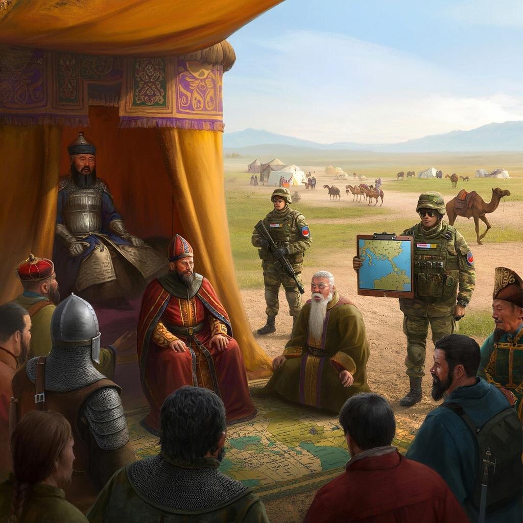 Спецназовцы быстро осознали ситуацию и решили воспользоваться своим преимуществом. Они представились посланниками из далекого будущего, прибывшими с важной миссией. Чингизхан проявил любопытство и пригласил их присоединиться к переговорам с представителями европейских государств.