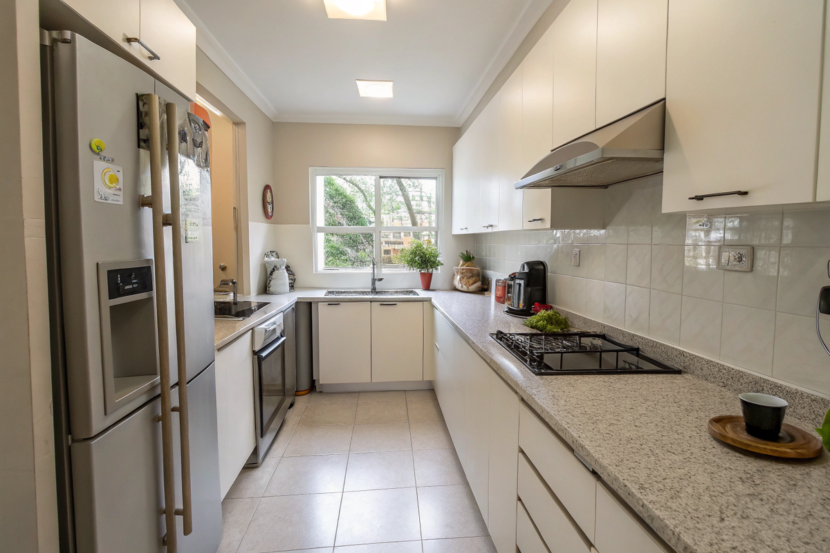 Холодильник. Ставьте его с краю кухонного гарнитура, а не посередине. Представьте: вы готовите, к вам заходит муж/дети/соседка за солью, открывает холодильник – и вся ваша рабочая зона перекрыта. Если холодильник стоит у стены или в нише – проблема решена. Ещё важный момент: дверца должна открываться «от стены», чтобы не блокировать проход.