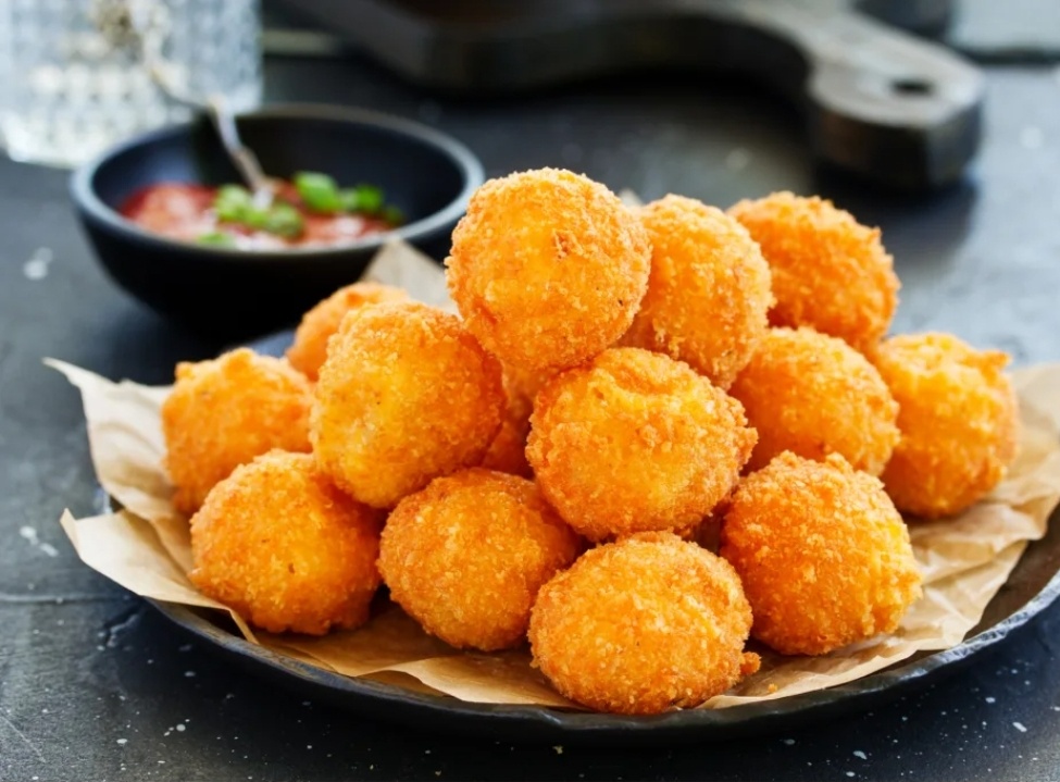 Сыр твëрдый -300 г Яйцо-1 шт Мука-30 г Масло растительньное-70 мл Сыр на тереть на мелкой тëрке добавить муку, яйцо. Перемешать. Сформировать сырные шарики. Об жарить их в растительном масле до золотистого цвета . Сырные шарики готовы! Приятного аппетита!