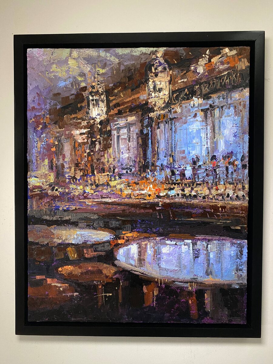 Двойная картина или картина «Два в одном»? Интересно, но некоторые видят тут оживленную ночную улицу, поток машин, дома и лужи на переднем плане)… «У барной стойки», 2025 40х50, Холст, масло. Оформлена в раму. Картина продается Вот такая «двойная» картина получилась ! Поэтому приобретая её вы приобретаете ДВЕ картины ! Две в одной ! #картина #художник #живопись #Москва