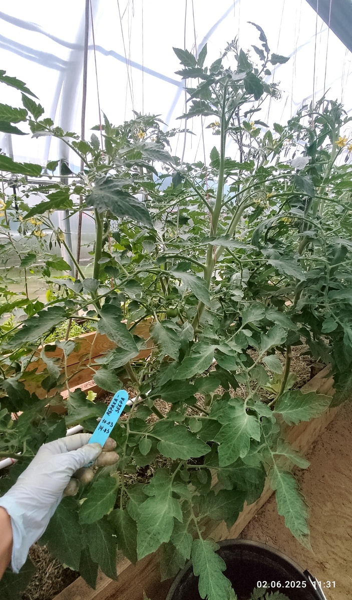 Этот томат я купила, как говорится, не глядя только из-за его названия 😁 Томат «Абраказебра» (Abracazebra) был создан американским селекционером Томом Вагнером путём отбора из сорта Green Zeba. Этот сорт отличается необычной «зебровой» окраской и сладким фруктовым вкусом. Растение мощное, растёт и развивается абсолютно без каких либо проблем. Не сбрасывал завязи при резких перепадах температур и скачках влажности. Сами плоды - очень крупные черри. Ближе к коктейльному типу. В кисти плодов не много, поэтому бешеной урожайностью он не порадовал. Возможно если вести его в несколько стеблей, то урожайность будет выше. Но опять же по количеству, а по общей массе вряд ли. Думаю его можно выращивать в открытом грунте. Очень лоялен к любой погоде. Плоды с очень нежной шкуркой, которая не трескается ни при каких условиях. Мякоть желеобразная, сочная. Снаружи эти томаты жёлто-зелёного цвета, а мякоть буро-малиновая. Вкус сладкий, фруктовый с полным отсутствием томатной кислинки. Мне не н