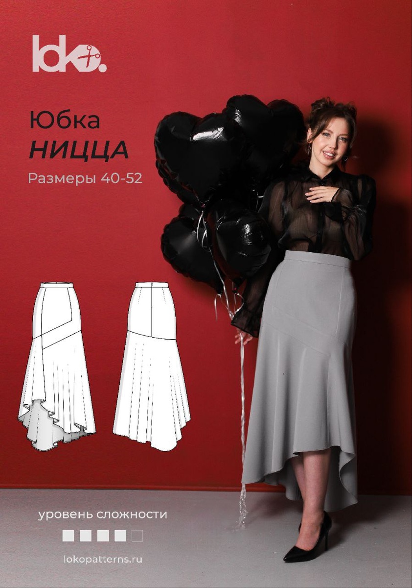 ВЫКРОЙКА ЮБКА НИЦЦА🔥 Асимметричная юбка в длине миди – идеальное сочетание элегантности и дерзости! ✨ Для каких случаев? - Торжественные мероприятия - Вечеринки и праздники - Встреча Нового года - Выпускной вечер - Офисный лук с изюминкой ✨Особенности модели: - Притачной пояс для идеальной посадки - Потайная застежка-молния по центральному шву спинки - Декоративная кокетка на переднем полотнище, состоящая из двух клиньев - Клинья с подрезом, переходящие в боковой волан - Асимметричный волан: короче спереди и длиннее сзади для эффектного силуэта ✨Расход ткани: - От 140 до 170 см при ширине ткани 150 см (зависит от роста и размера). ✨ Рекомендуемые ткани: - Тонкая или мягкая шерсть - Полушерсть - Тяжелый шелк с хорошей драпировкой - Костюмная ткань Создайте свой уникальный образ с юбкой "Ницца"! 👉 Для заказа переходите по ссылке: [lokopatterns.ru/product/ni...]) Делитесь своими образами и вдохновляйте нас! 🔥