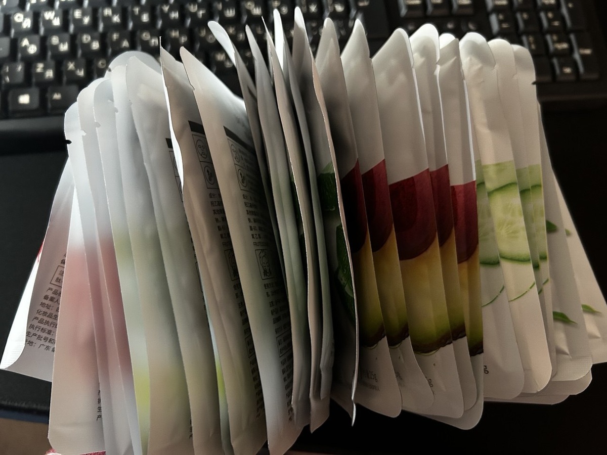 Затарилась 😀 Первые два фото - это китайские тканевые маски. Покупаю уже третий раз. Аллергии на них нет, увлажняют хорошо. Кожа после них мягкая и напитанная. Нравится. 30 штук на Озоне за смешные деньги. По 5 штук разных - алоэ, водоросли, гранат, зеленый чай, манго. 3 и 4 фото - это корейские. Взяла на пробу. Тут 24 штуки - 6х4 - алоэ, роза, зеленый чай, апельсин, голубика, гранат. Тоже не дорого. Теперь хватит надолго!