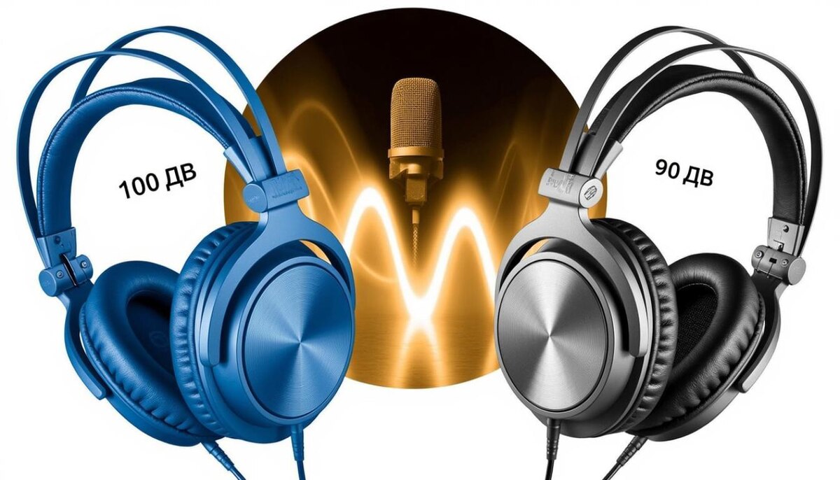 <КАРТИНКА_1: запрос к Гуглу 'headphones sensitivity sound wave realistic' + описание 'Наушники с разной чувствительностью на фоне 3D-звуковой волны, фотореалистичная детализация диффузоров, без текста' + . (Источник: Яндекс Картинки)>