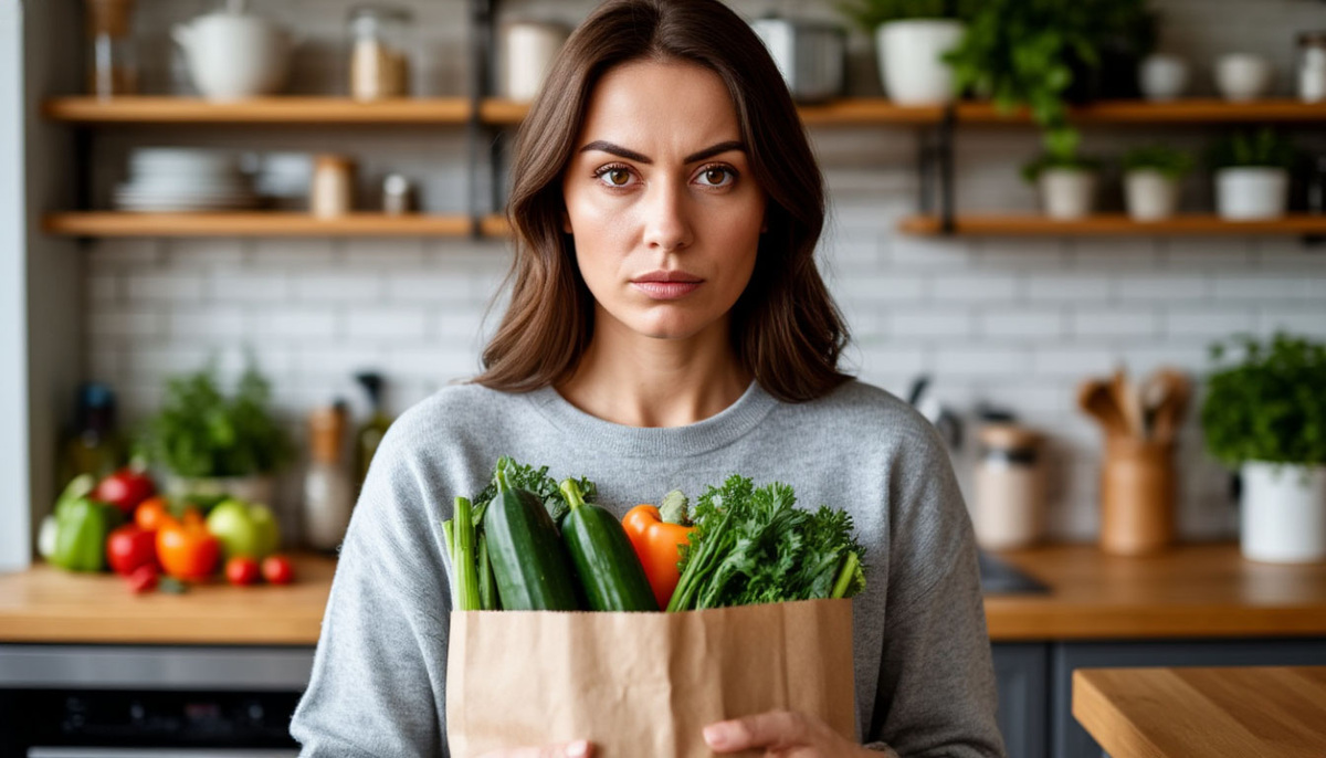 Достаю — всё пересчитывает: молоко, грудки, кефир и вдруг — лицо вытягивается.