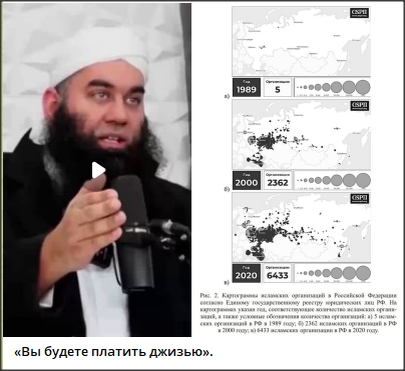 Причём те мусульмане, с которыми русские исторически уже не один век в государстве живут, будут вынуждены выбирать - быть с кафирами или с «настоящими мусулманами», третьего варианта не дадут. А чтобы вы не думали, что такая бесовщина происходит только в Британии, то вот вам инфографика со статистикой, по которой очень хорошо прослеживается процесс исламизации РФ, начавшийся ещё до развала Советов. Так что, перспектива объявления нам джизьи совсем не за горами, след в след идём за британцами.
