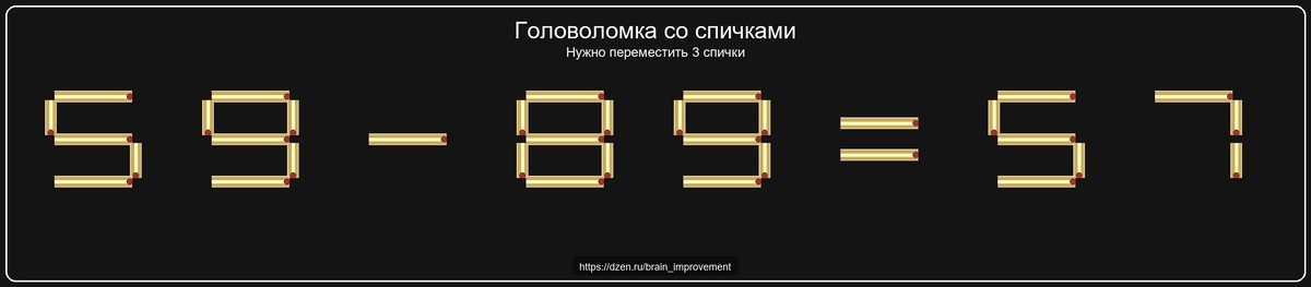 Отличная задачка для развития мозга! 🧠 Всего 3 спички нужно переместить для верного решения! 🔥