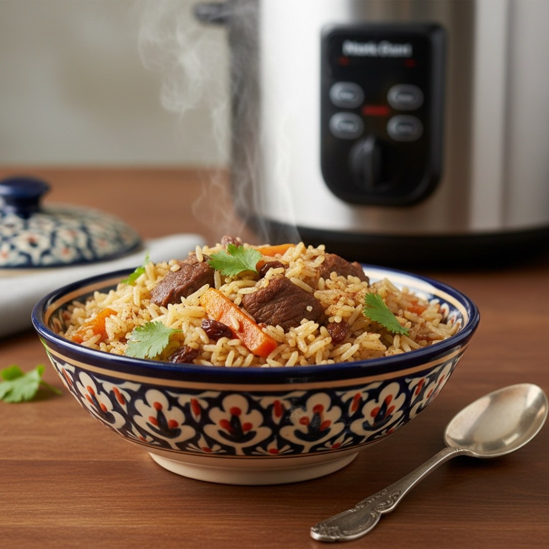 Плов в мультиварке Ингредиенты ⤵️ 🔸Говядина – 500 г 🔸Рис – 400 г 🔸Морковь – 2 шт. 🔸Лук репчатый – 2 шт. 🔸Чеснок – 1 головка 🔸Зира – 1 ч.л. 🔸Барбарис – 1 ст.л. 🔸Масло растительное – 80 мл 🔸 Соль, перец - 1 щепотка 🔸 Горячая вода – 600 мл Приготовление🍚 1. Мясо нарезать кубиками, лук полукольцами, морковь соломкой. 2. В чашу мультиварки налить масло, установить режим «Жарка». Обжарить лук до прозрачности. 3. Добавить мясо, готовить 15 минут до румяной корочки. 4. Добавить морковь, зиру и барбарис. Готовить ещё 10 минут. 5. Рис промыть, выложить ровным слоем на мясо с овощами. Воткнуть головку чеснока. 6. Залить горячей водой, посолить и поперчить. Вода должна покрывать рис на 1.5 см. 7. Готовить в режиме «Плов» 45 минут. Не открывать крышку 15 минут после сигнала. Рецепт дня #плов #рис #овощи #мясо #говядина #специи #мультиварка #ужин
