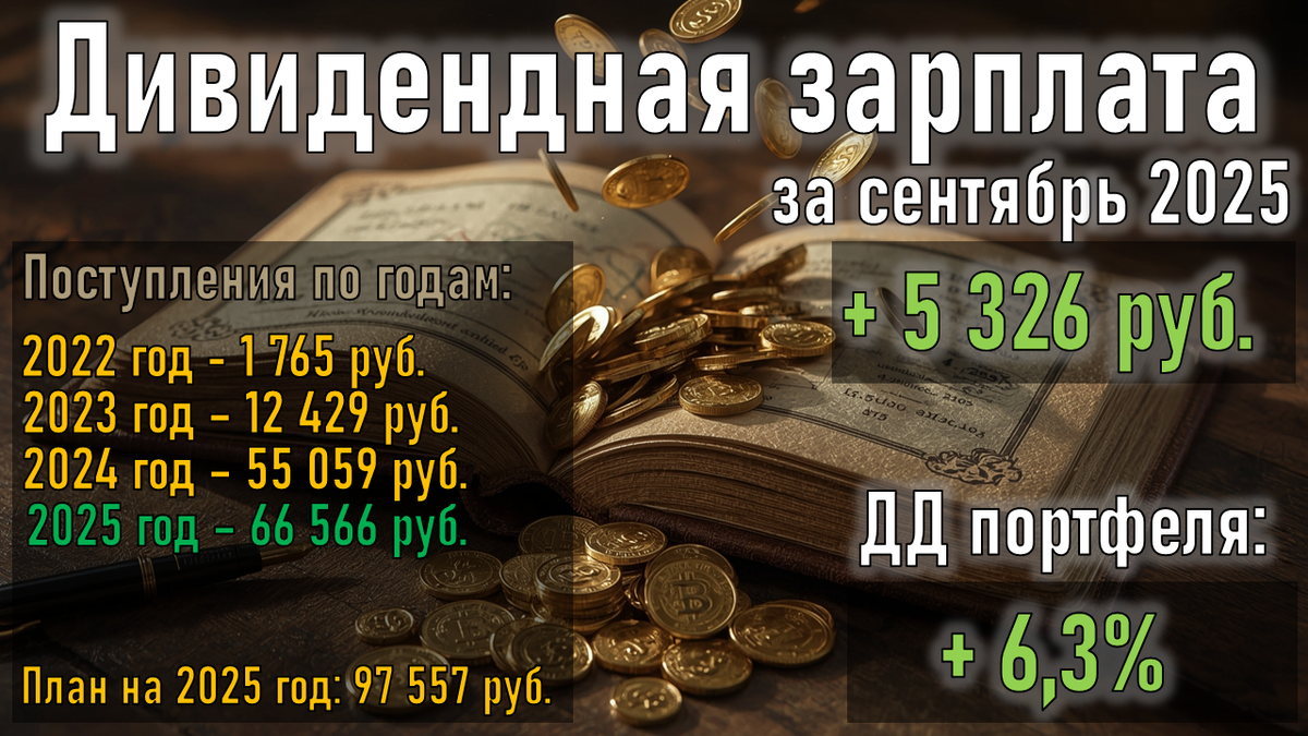 Осень вступила в свои права, а это значит, что пришло время подвести финансовые итоги за сентябрь. Этот месяц традиционно считается более спокойным после дивидендных рекордов лета, но даже в такие периоды пассивный доход не дремлет! Давайте разберемся, какие поступления порадовали в этом месяце, как двигались деньги и во что были вложены средства. В сентябре я ожидал получить 8`792,90 ₽, но по факту на брокерский счет поступило 5`326,01 ₽. Отклонение составило -3`466,89 ₽, что связано с корректировкой дивидендного календаря по некоторым эмитентам. Несмотря на это, результат остаётся положительным и подтверждает важность диверсификации — даже в менее насыщенные месяцы денежный поток не иссякает. Кто порадовал выплатами в сентябре?