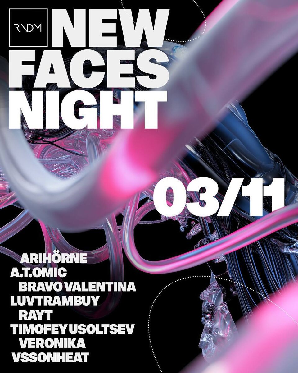 NEW FACES NIGHT 3.11 Новый ивент под эгидой поиска переспективных и талантливых артистов, вновь соберет «новые лица», котрые хотят выйти на новый уровень и показать себя. ARIHÖRNE А.Т.OMIC BRAVO VALENTINA LUVTRAMBUY RAYT TIMOFEY USOLTSEV VERONIKA VSSONHEAT 🎫 Вход свободный 📆 3 ноября, с 22:00 📍 RNDM, Москва, Наставнический пер., 13/15с3