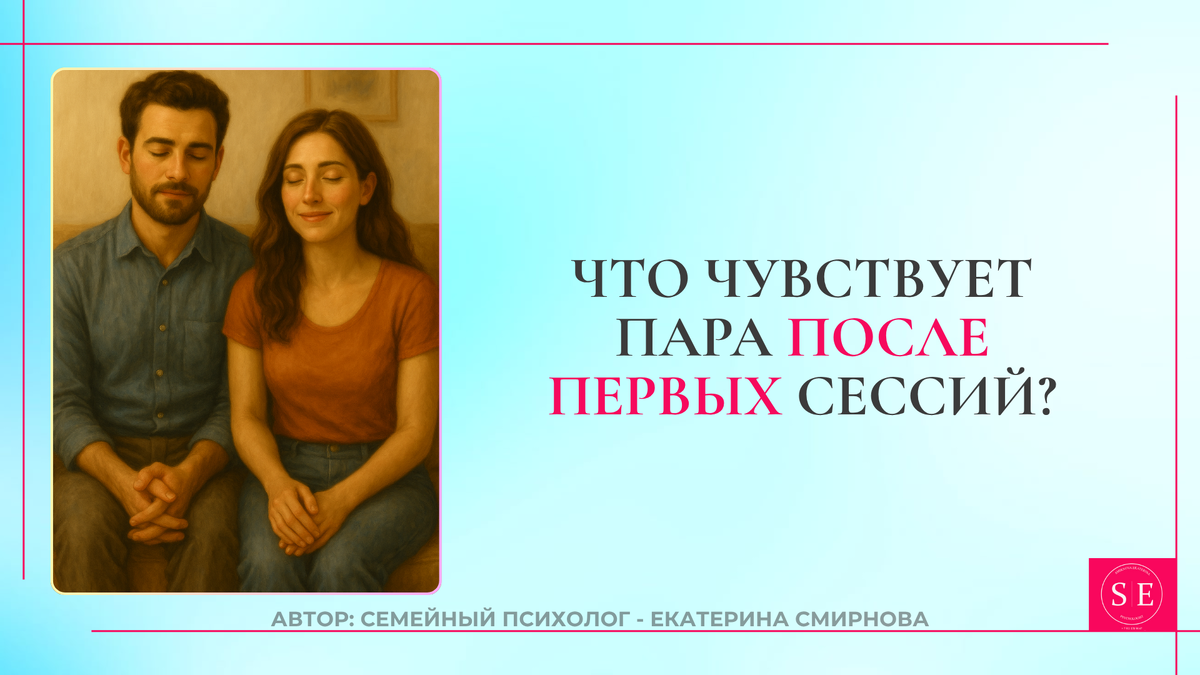 Что чувствует пара после первых сессий эмоционально-фокусированной терапии (ЭФТ) Автор: Екатерина Смирнова — семейный психолог, эмоционально-фокусированный терапевт, опыт с 2017 года Многие пары приходят на терапию с надеждой: «Сейчас поговорим с психологом — и всё наладится».