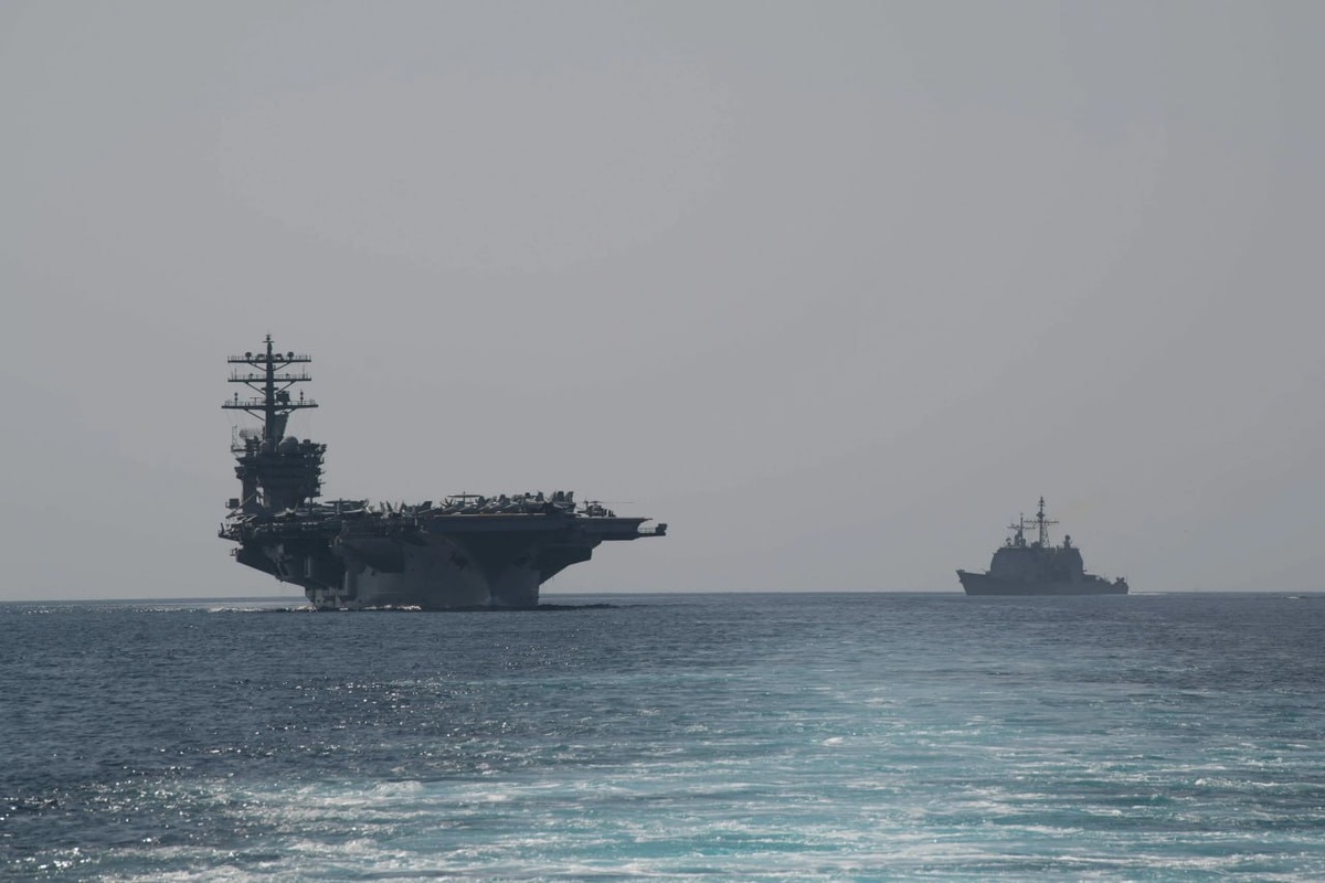 ❗️🗺Атомный авианосец USS Nimitz, ракетный крейсер типа "Тикондерога" (на фото выше) и четыре эсминца класса "Арли Бёрк" с крылатыми
