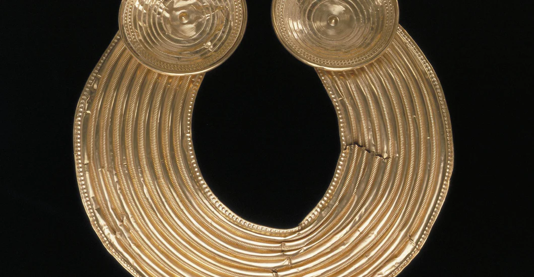 В других местах золото использовалось во многих древних культурах, и ярким примером служит ожерелье из Шеннонгроув . Обнаруженное около 150 лет назад в Лимерике, Ирландия, оно, как полагают, представляло собой церемониальный ошейник, изготовленный между 800 и 700 годами до нашей эры.