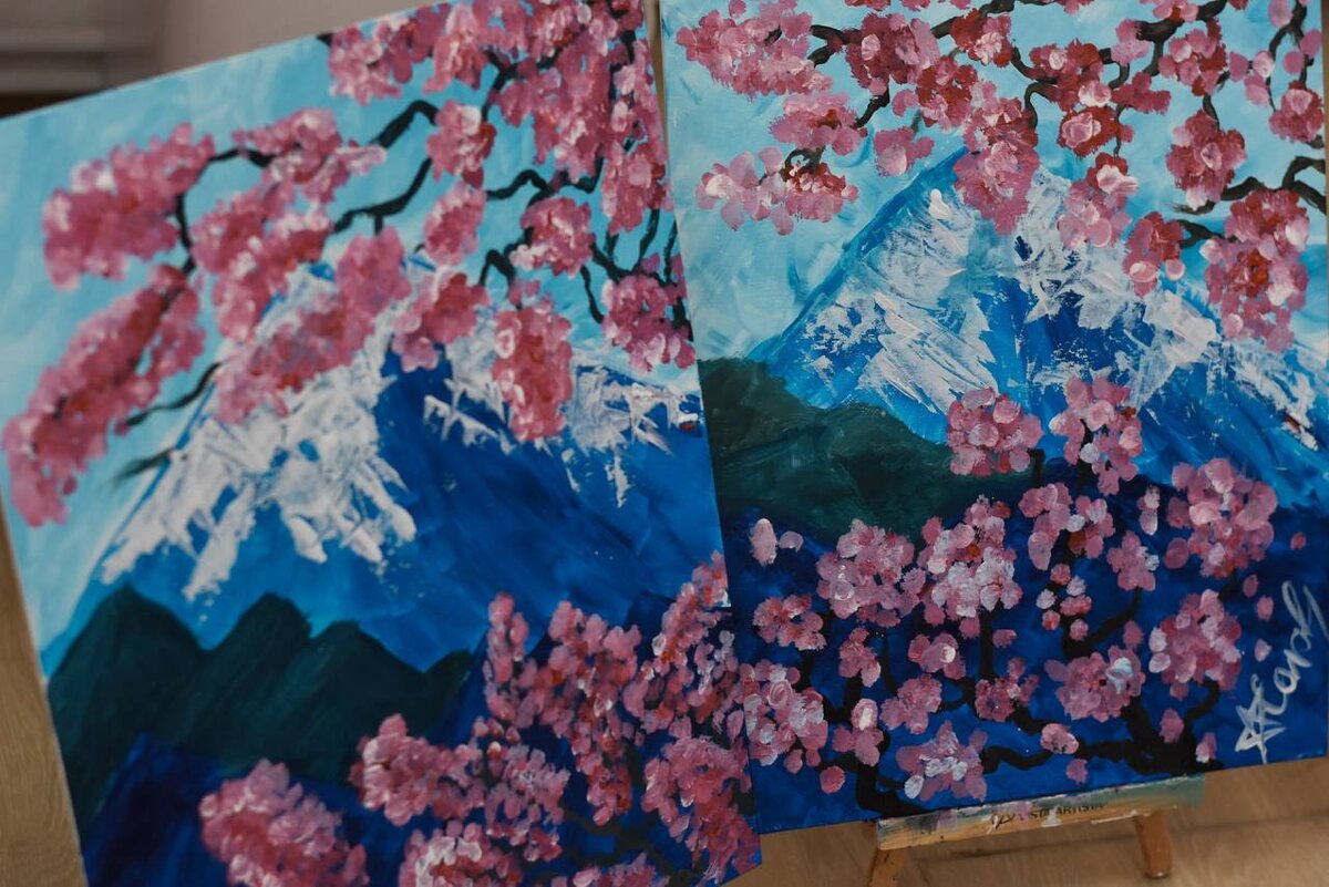 Сакура на фоне заснеженных гор — это метафора гармонии между силой и нежностью, вечностью и мимолетной красотой 😍 💭Хотите создать свой идеальный пейзаж? У нас есть регулярные мероприятия по живописи акрилом для любого уровня подготовки, афиша всех мероприятий на нашем сайте - artparty31.ru/schedule