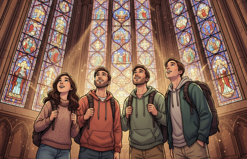 Две трети витражей — оригинальные, XIII века. Они пережили революцию (когда часовню превратили в архив), войны, пожары и даже Парижскую коммуну. Представляете, сколько людей смотрели на эти стёкла за 750 лет?