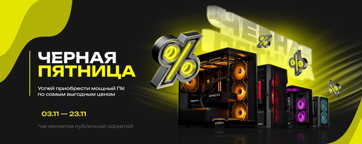 🔥Пока все готовятся — МЫ УЖЕ НАЧИНАЕМ! ⚫️В честь Чёрной пятницы мы сделали ОГРОМНЫЕ СКИДКИ на весь наш ассортимент! 💸 АКЦИОННЫЕ СБОРКИ: 🔵 Intel Core i5-13400F 🟢 RTX 5060 — 92 990₽ → 79 990₽ 🔴 Ryzen 5 7500F 🟢 RTX 5060 — 113 990₽ → 99 990₽ 🔴 Ryzen 5 7500F 🟢 RTX 5070 — 164 990₽ → 144 990₽ 🔴 Ryzen 7 7800X3D 🟢 RTX 5070 Ti — 230 990₽ → 209 990₽ И это только часть скидок! Ещё больше — на нашем сайте, в Telegram-магазине и во «ВКонтакте». 🎁 Для ВСЕХ клиентов B-ZONE — скидка 50% на дополнительную гарантию. 🍀 Крути колесо фортуны на сайте и получай топовые призы за покупку ПК. 🚚 Доставка для ВСЕХ БЕСПЛАТНАЯ по России, Казахстану и РБ! ⌛ Весь этот шквал скидок продлится с 3 по 23 ноября. Успей забрать свой компьютер мечты по нереально выгодной цене!
