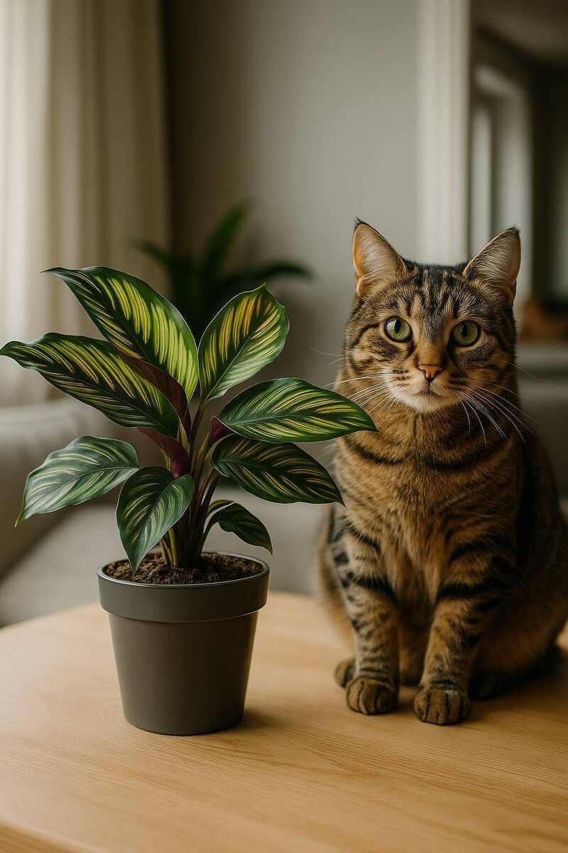 Многие владельцы кошек обожают украшать свой дом растениями, но всегда возникает закономерный вопрос: безопасно ли это для пушистого друга? Особенно если речь идет о таком ярком и привлекательном растении, как калатея. Яркие зеленые листья с фиолетовой нижней стороной, а у некоторых видов – розовые, белые, оранжевые или красные узоры, которые складываются на ночь, делают ее настоящим украшением интерьера. Но что если у вас есть кошка, любящая погрызть зелень? Калатея – абсолютно нетоксичное растение для кошек! Вы можете смело держать это растение дома, не опасаясь за здоровье своего питомца. Кошка может попробовать на вкус любую часть растения, и это не причинит ей вреда. Более того, калатеи, как правило, не привлекают внимание кошек, что делает их еще более подходящим вариантом для дома с четвероногим другом. Несмотря на безопасность калатеи, стоит помнить о чувстве меры у вашей кошки. Некоторые кошки, увлеченные поеданием растений, могут объесться листьями или стеблями. В этом случае