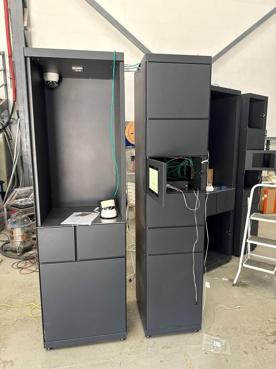 Фотографии с производства наших новых боксов — это специально разработанные и адаптированные конструкции для максимальной вместимости инструмента. Вы могли видеть на фото и видео наш предыдущий бокс, который мы выкупили у конкурента. Покупка их бокса позволила нам ускорить запуск и тестирование первой точки проката. К сожалению, бокс со стеклянными дверцами был довольно хлипким из-за тонкого металла (0.8 мм) и имел ряд недостатков. Наш новый бокс изготовлен из более прочного материала — металла толщиной 2.0 мм. При его разработке мы учли все ошибки, допущенные в ходе предыдущего опыта.
