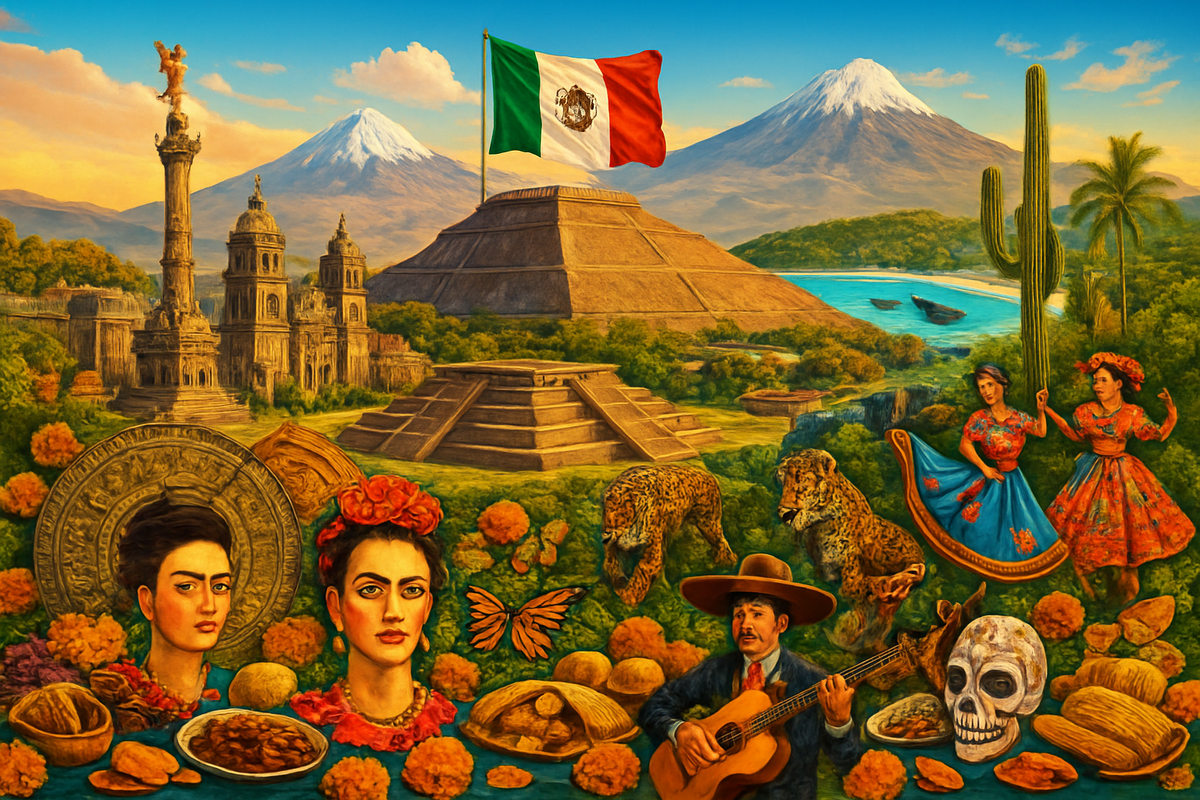Мексика – это страна, где древние цивилизации встречаются с испанским наследием, где каждый день – это праздник цвета и звука, а традиции глубоко переплетены с повседневной жизнью. Это земля контрастов: от заснеженных вулканов до тропических пляжей, от шумных мегаполисов до тихих деревень, но всюду пронизанная неповторимым духом мексиканской культуры.