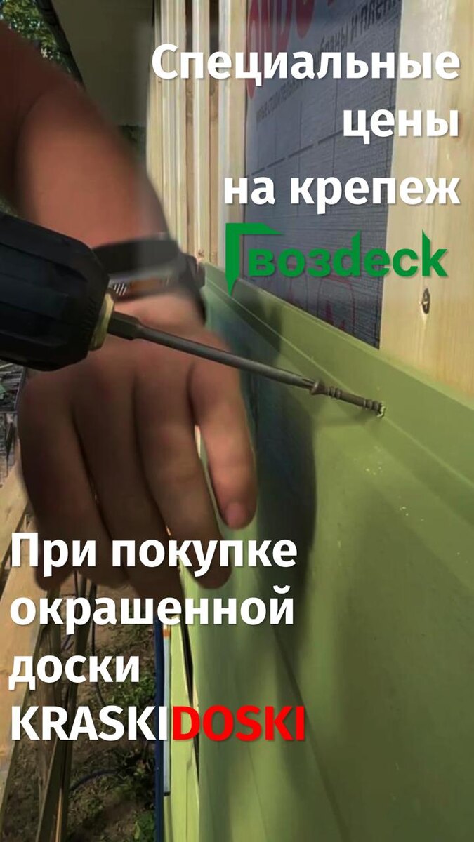 ✨ Специальное предложение 😊 При покупке окрашенной доски - специальные цены на крепёж Гвозdeck. Гвозdeck - современное решение для аккуратного и надёжного монтажа древесины. Акция действует на определённые позиции. Актуальные товары, сроки и цены уточняйте у менеджера. Связаться с менеджером