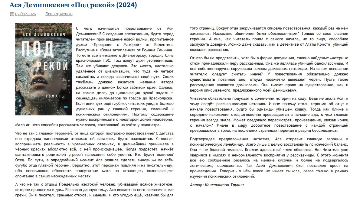 Ася Демишкевич "Под рекой" (2024) | Критика