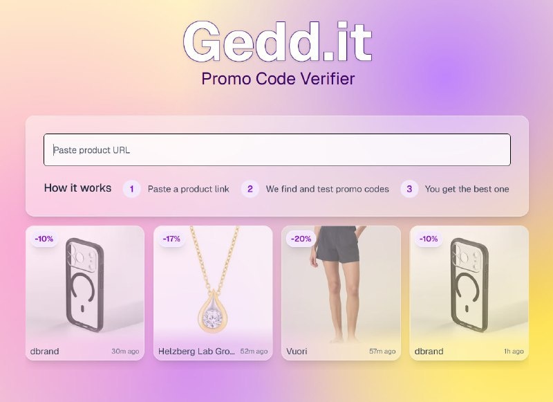 ⚡️ Нашли тулзу, которая сама подбирает рабочие промокоды ко всему, что ты хочешь купить — сервис Gedd.it уже в деле.