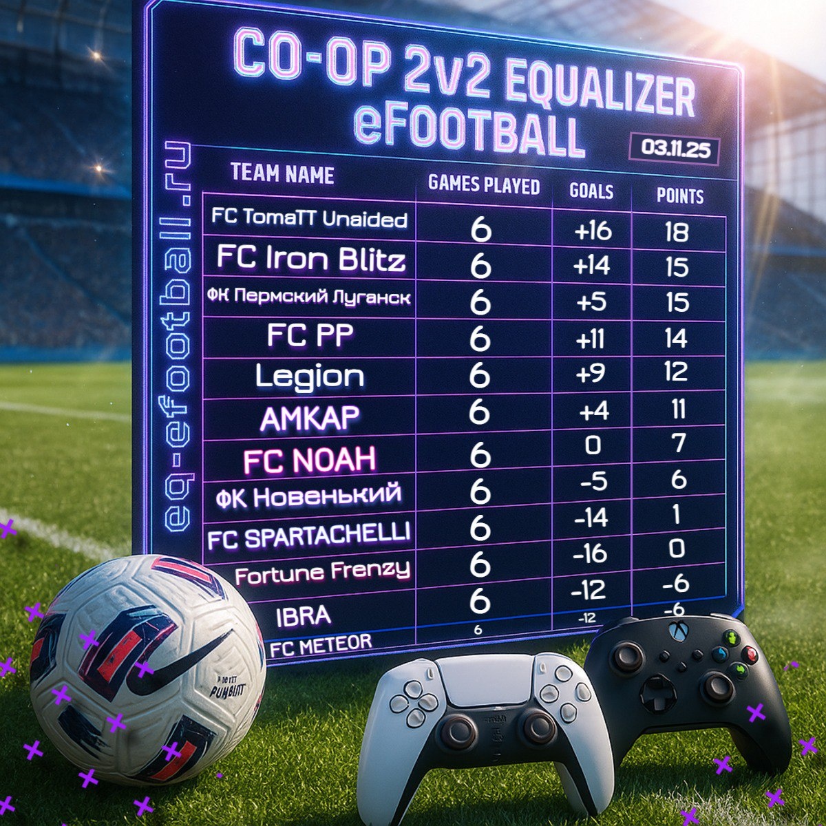 📊 Таблица Лиги КООП 2 на 2 в формате Equalizer eFootball [ 6 сезон