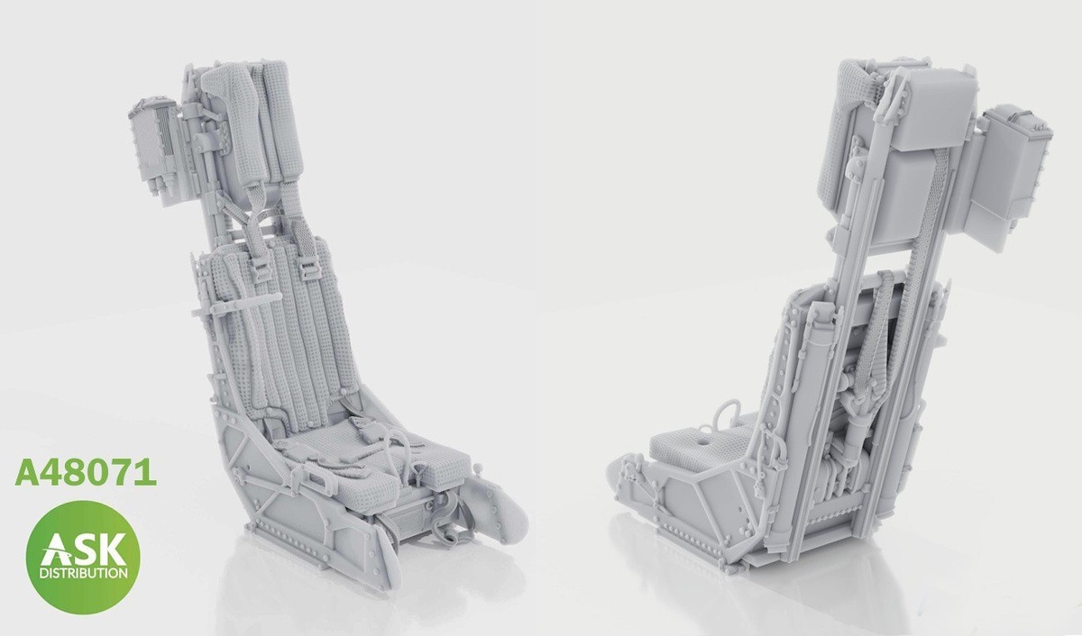 Art Scale Kit (ASK) из Чехии выпустила на 3D-принтере катапультные кресла SJU-4 для модели AV-8B Harrier II PLUS в масштабе 1/48 от UMа - варианты с привязными ремнями и без них: A48071 - SJU-4 Ejection Seat with seat belts for the UMa AV-8B Harrier II PLUS A48072 - SJU-4 Ejection Seat excluding seat belts for the UMa AV-8B Harrier II PLUS