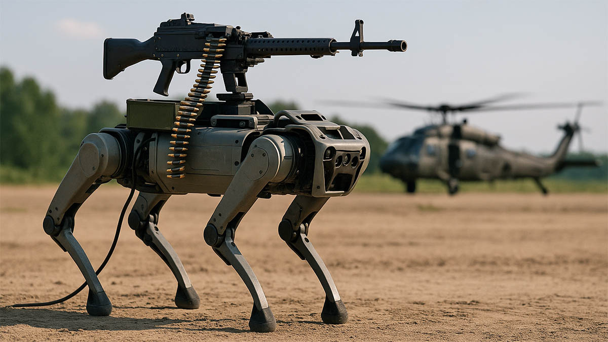Китайская армия испытала на очередных учениях четвероногих роботов поддержки, вооружённых взрывчаткой и пулемётами, а также дроны с функцией поражения целей от первого лица. Манёвры, организованные Народно-освободительной армией Китая (НОАК), были направлены на проверку потенциала автономных систем в условиях десантной операции. Видео, опубликованное телеканалом CCTV, демонстрирует действия робособак и беспилотников в сценарии высадки на побережье и наступления в джунглях. По замыслу учений, передовая техника применялась в условиях прорыва береговой обороны. Роботы на четырёх конечностях пробегали через заграждения и помогали продвигаться основным силам. Некоторые несли боекомплект для бойцов на передовой, другие использовались как подрывные платформы для расчистки проходов. В одном из эпизодов робот с установленным пулемётом двигался впереди десантной группы, высаженной в густом лесу, обеспечивая прикрытие и разведку. Параллельно специальные подразделения управляли FPV-дронами, которы